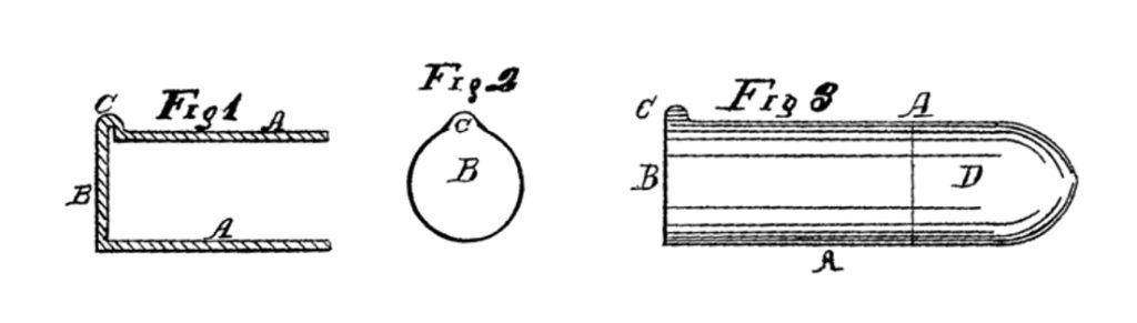 A are the sides of the metallic shell; B is the rear end of the same; C is the projection or lip; and D is the bullet.