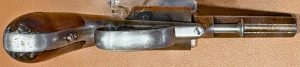 The small frame revolver is in .30 caliber and has a cylinder length of 1,25″. The medium and large frame revolvers are both in .32 caliber with cylinder lengths of 1,5″ and 1,625″ respectively. Some cylinders have hammer rests (as can be seen on picture of the large frame cylinder) while others have not. It is not known when production exactly started and ended but it is generally believed that the production period ran from 1856/57 to 1861/62 with an estimated production of around 1000 units of each frame size.