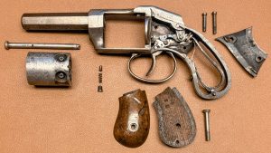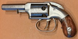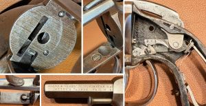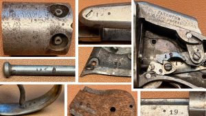 In terms of markings, all first-variation revolvers and the early production of the second variation bear the ALLEN & WHEELOCK name, stamped either on the top flat of the barrel or on the top frame strap, with the patent date located on the left side of the hammer. In later production runs, however, the maker’s name and patent information moved to the left side of the barrel.