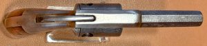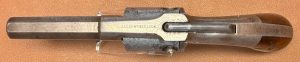 This specimen is the most common one found and is of late production having the makers name and patent information on the left side of the barrel and no marking on the hammer. Note that the space on the barrel is too small for holding the information leading to a truncation of the last letters.